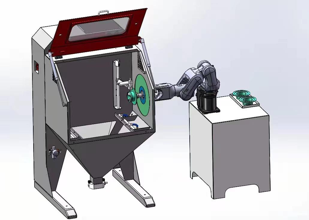 结合超低压喷砂设备主机Sandmaster不同规格型号实现自动化配套,针对客户的需要进行自动化改善,匹配不同客户对